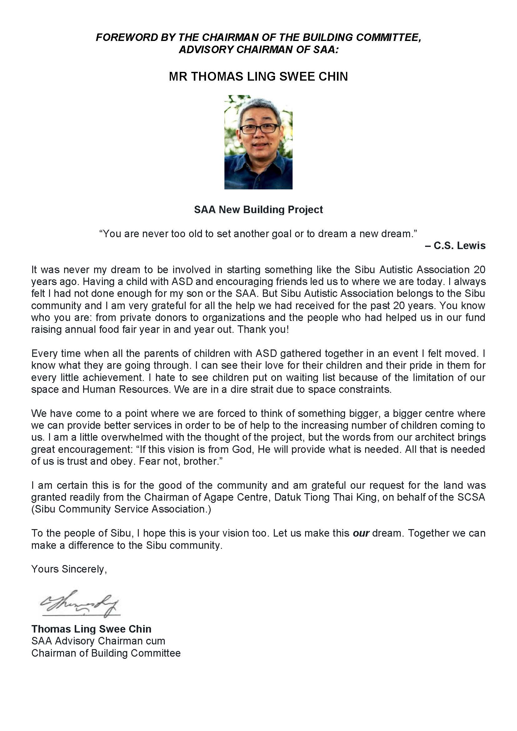 Chairman of Agape Centre Message