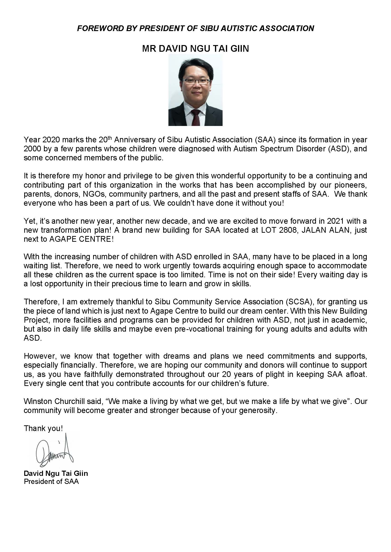 Chairman of Agape Centre Message